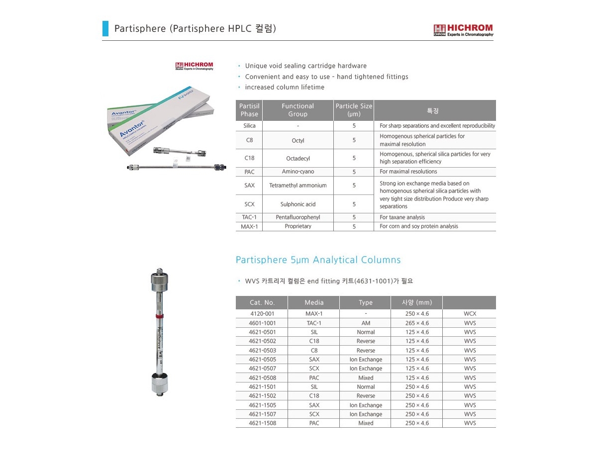 Partisphere HPLC 컬럼 특징