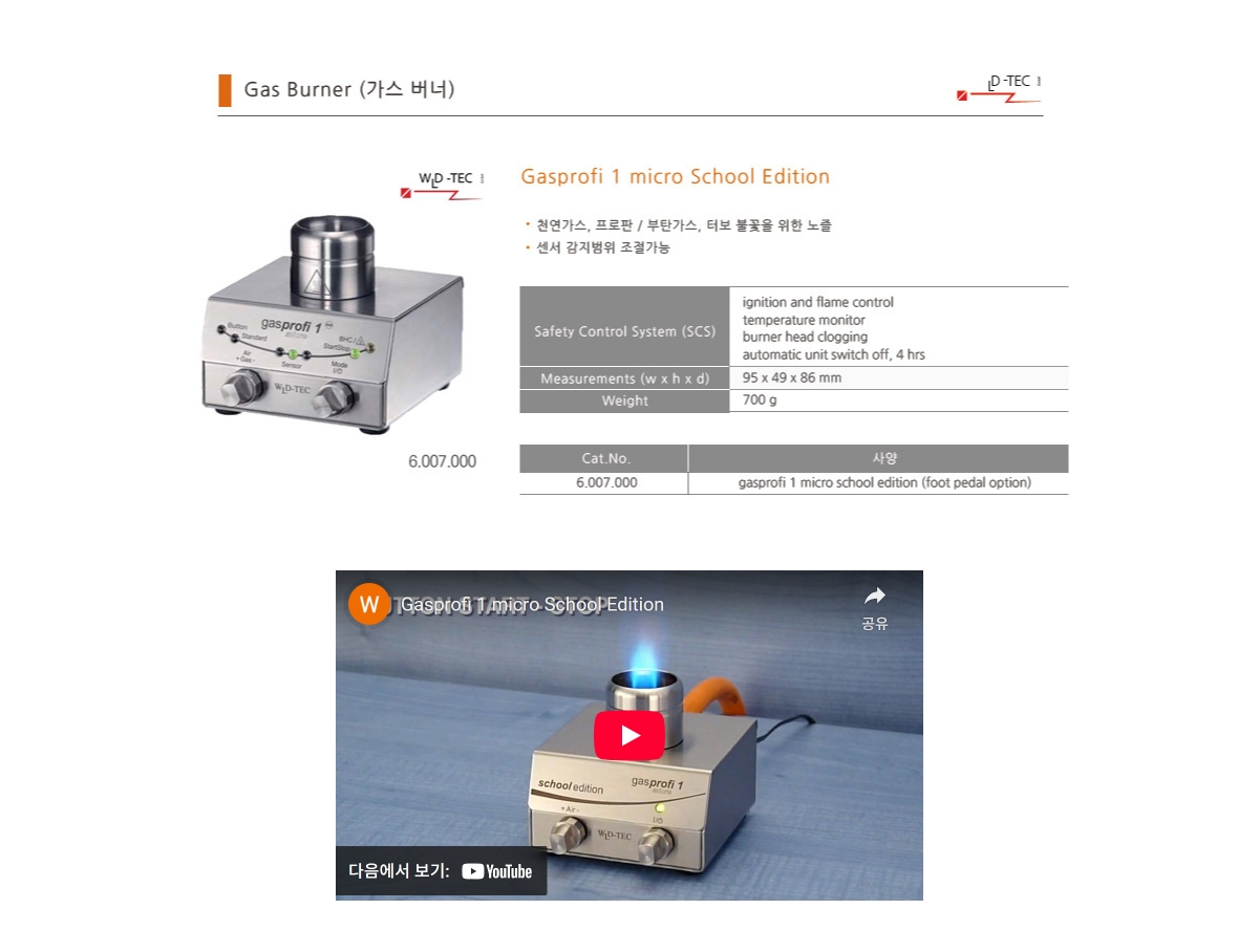 | 모델명 | Gasprofi 1 micro School Edition (foot pedal option) |