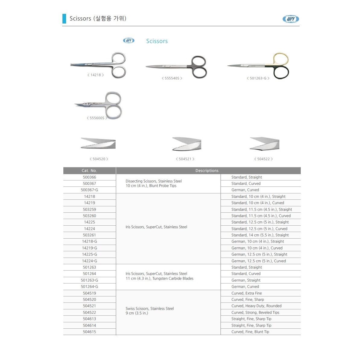 WPI 14218 / 실험용 가위(Scissors), IRIS, STR, 10cm[1EA]