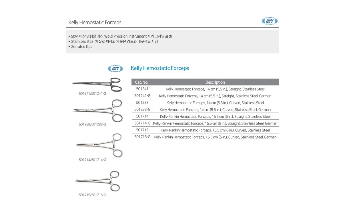 WPI 501288-G / 켈리 혈관 포셉(Kelly Hemostatic Forceps), 14CM ,CVD[1EA]