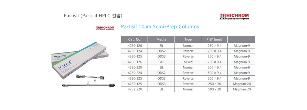 Hichrom 4230-126 / HPLC 컬럼 Partisil PAC Column, 9.4X250mm, 10um(MAGNUM-9)[1EA]