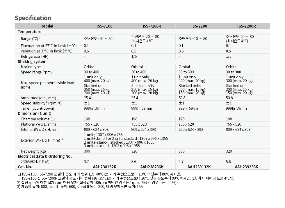 1) 온도 제어 범위는 모델별로 주변온도 대비 ±10~20°C 조정 가능 (최저 4°C)