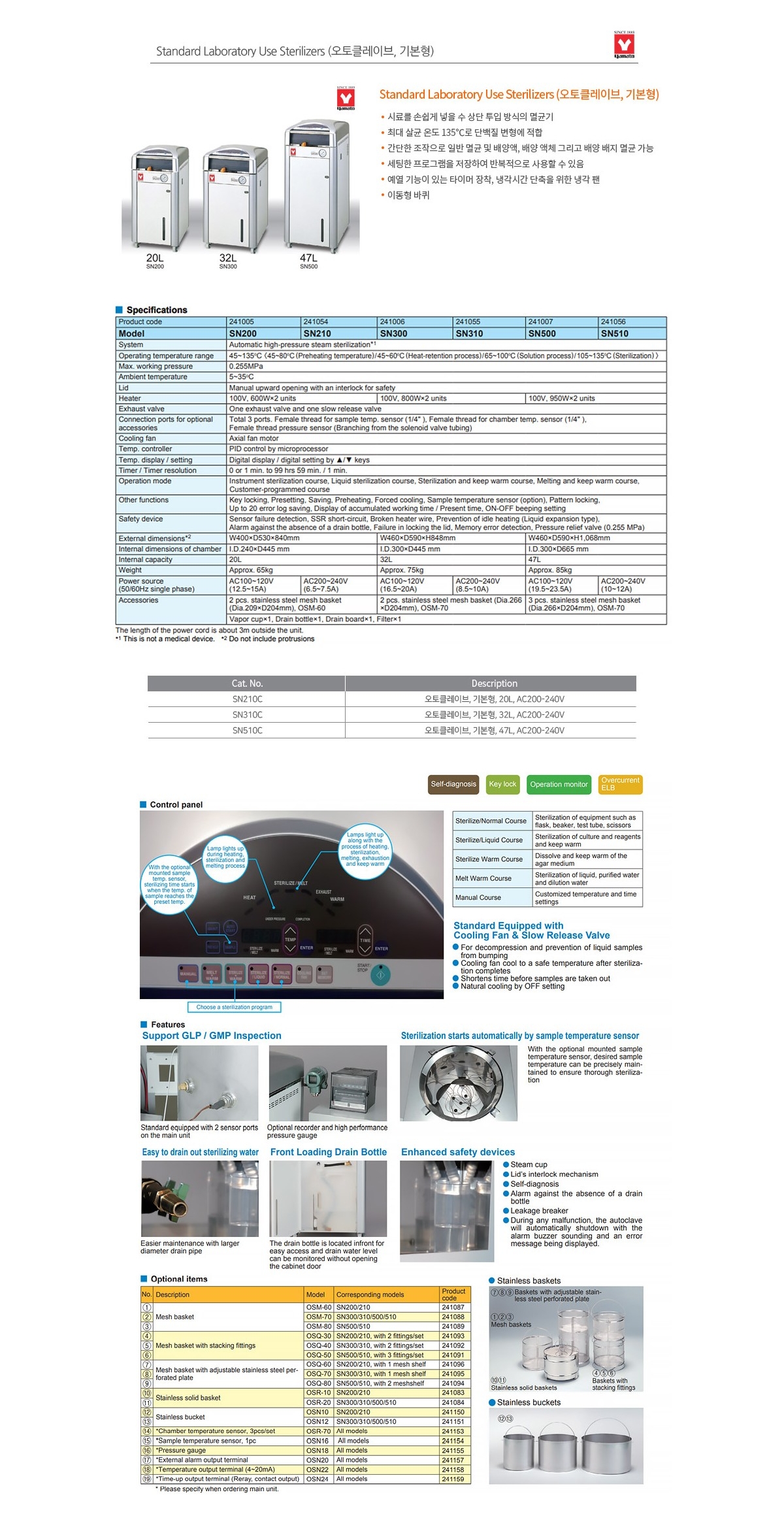 YAMATO SN510C / 오토클레이브 고압증기 멸균기(Steam Sterilizer), 47L, 220V, 프로그램형, 소형, 기본형[1EA]