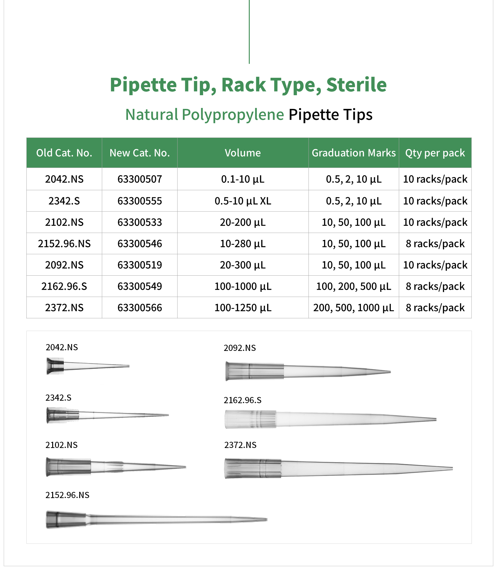 | 2102.NS | 63300533 | 20–200 µL | 10, 50, 100 µL | 10 racks/pack |