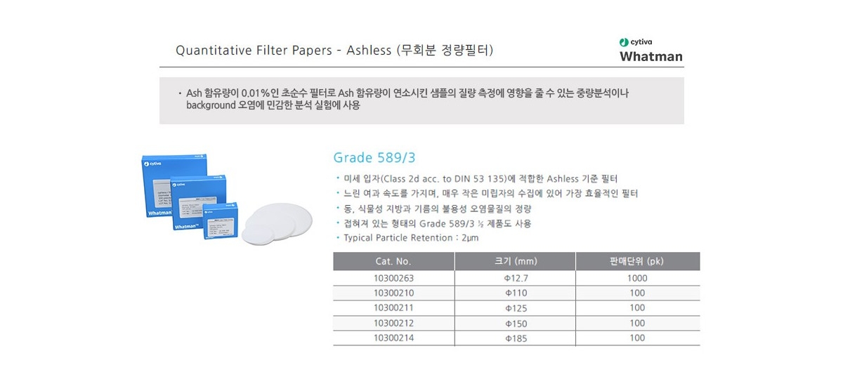 CYTIVA 10300211 / Grade 589/3 정량 필터(Quantitative Filter Paper), 125mm[100EA/PK]