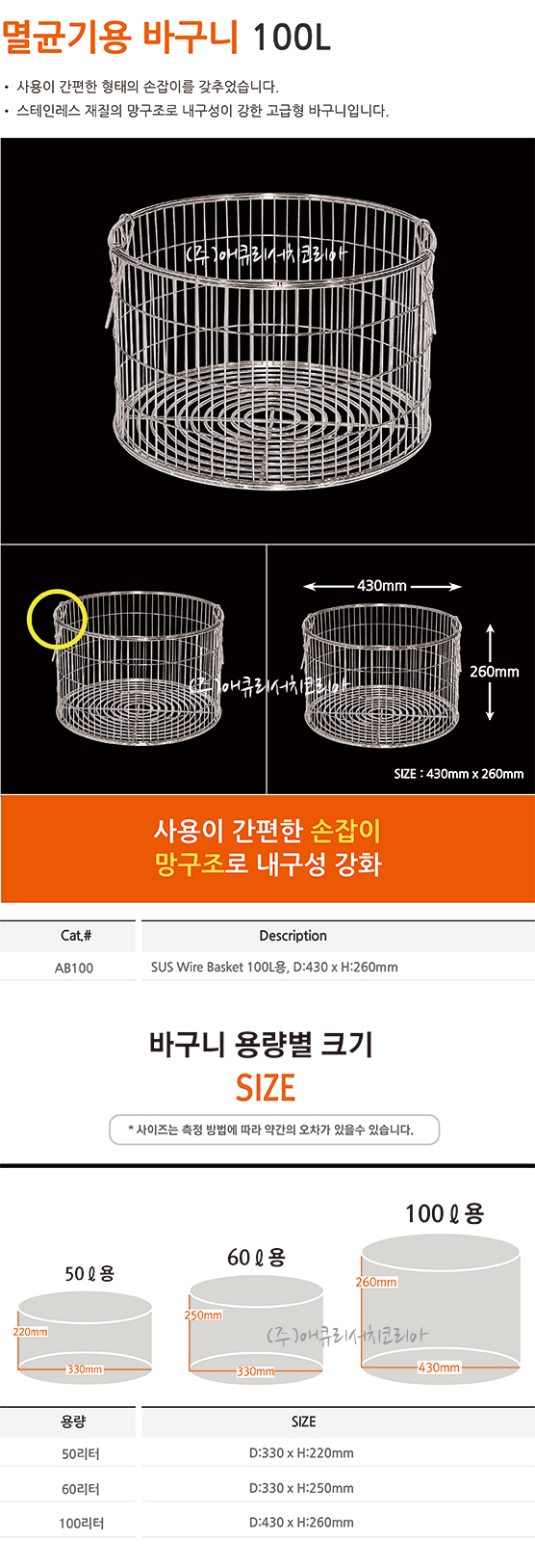 | AB100 | SUS Wire Basket D:430 × H:260 mm |